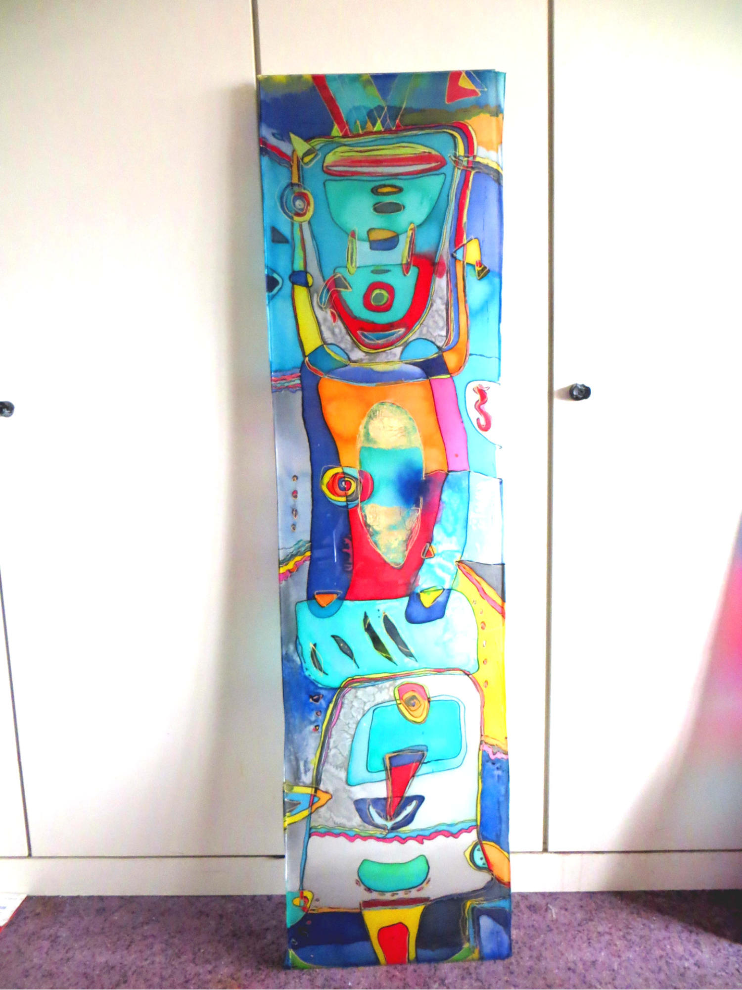 mit dem Innenarchitektn. Kunstwerk ca 230 x 600 cm Montage vor Ort.