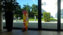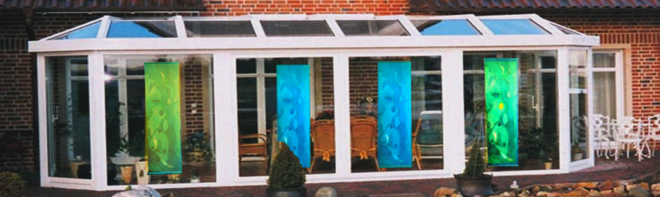 Die hinter federleichten Plexiglas geschützte halbtransparente Malerei ist leicht zu montieren und bietet einen optimalen Vogelschutz,