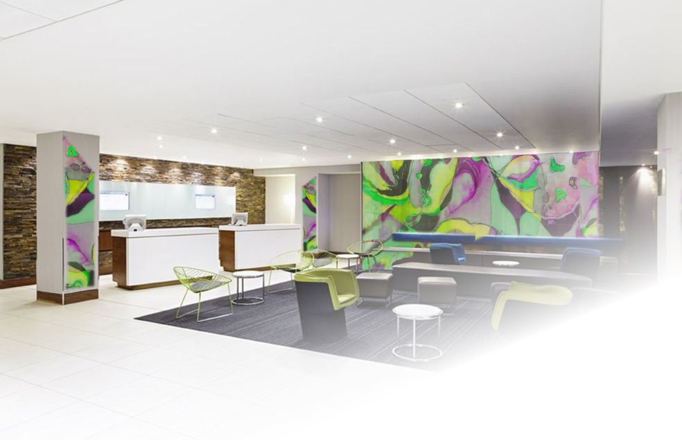 Beispiel eines hinterleuchteten Wandbildes im Foyer eines Tagungs & Seminar Hotels