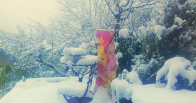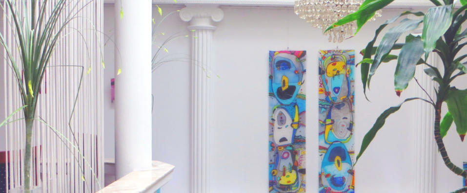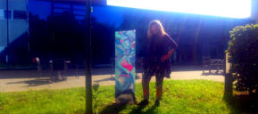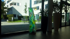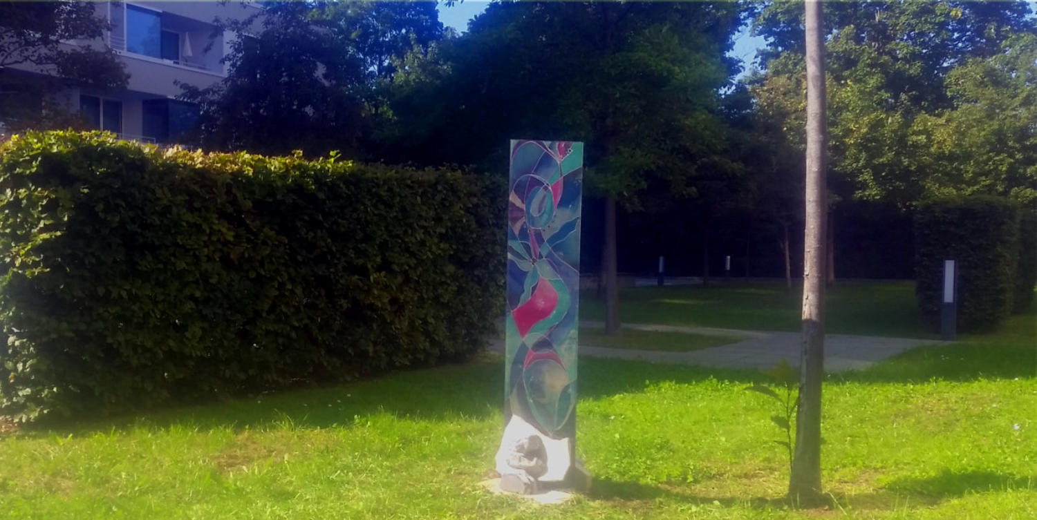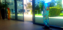 Auch auf Säulen immer das Gesamtkonzept farblich im Blick. Dieses „Wandgemälde“